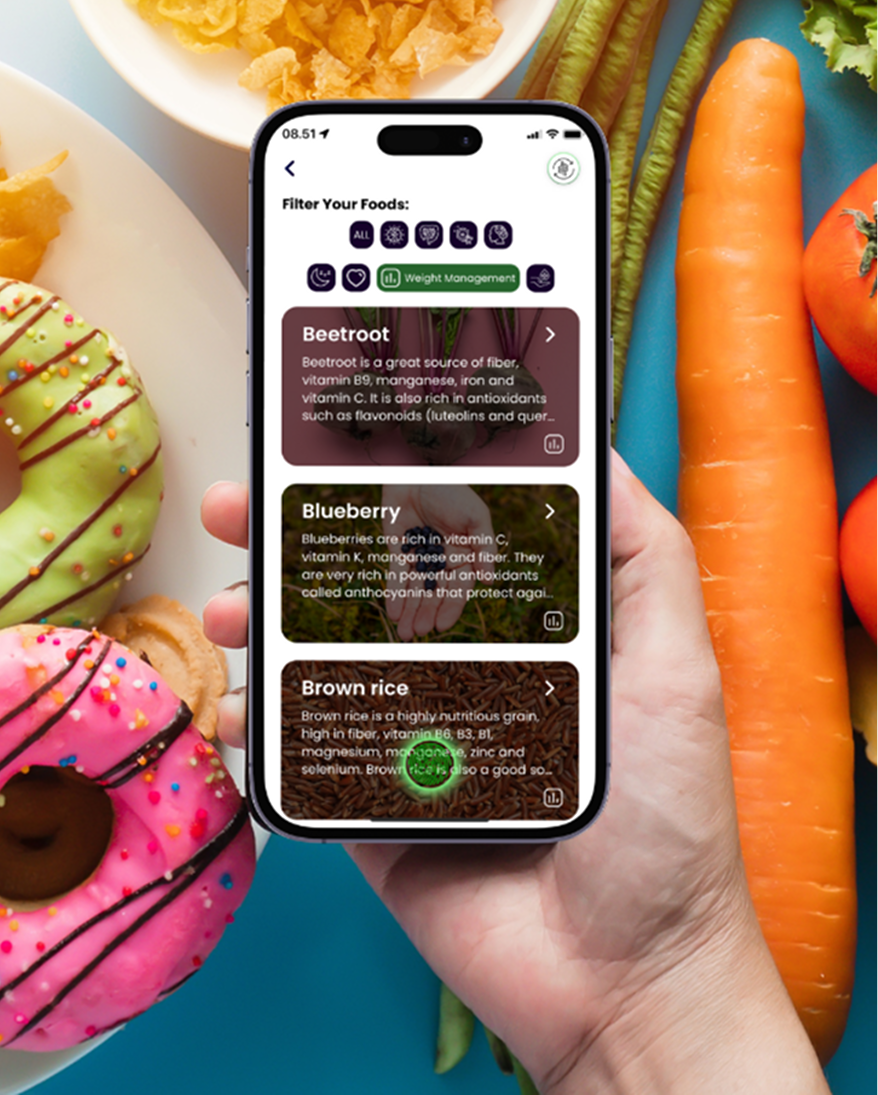 Modtag tilpassede kostplaner, forslag til kosttilskud og sundhedsinterventioner.