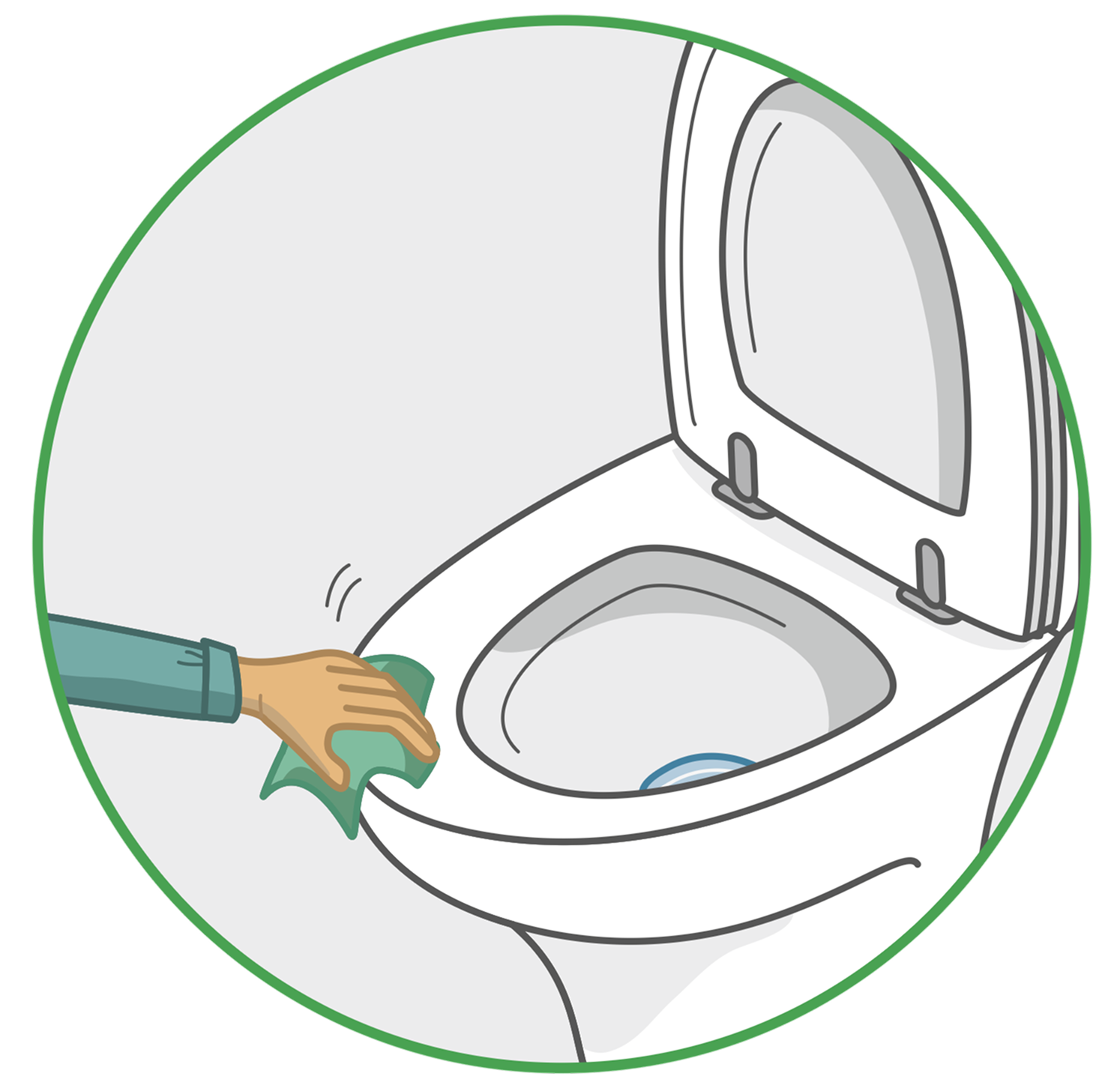 Kransen på toiletkummen aftørres, så det vandopløselige samplings-