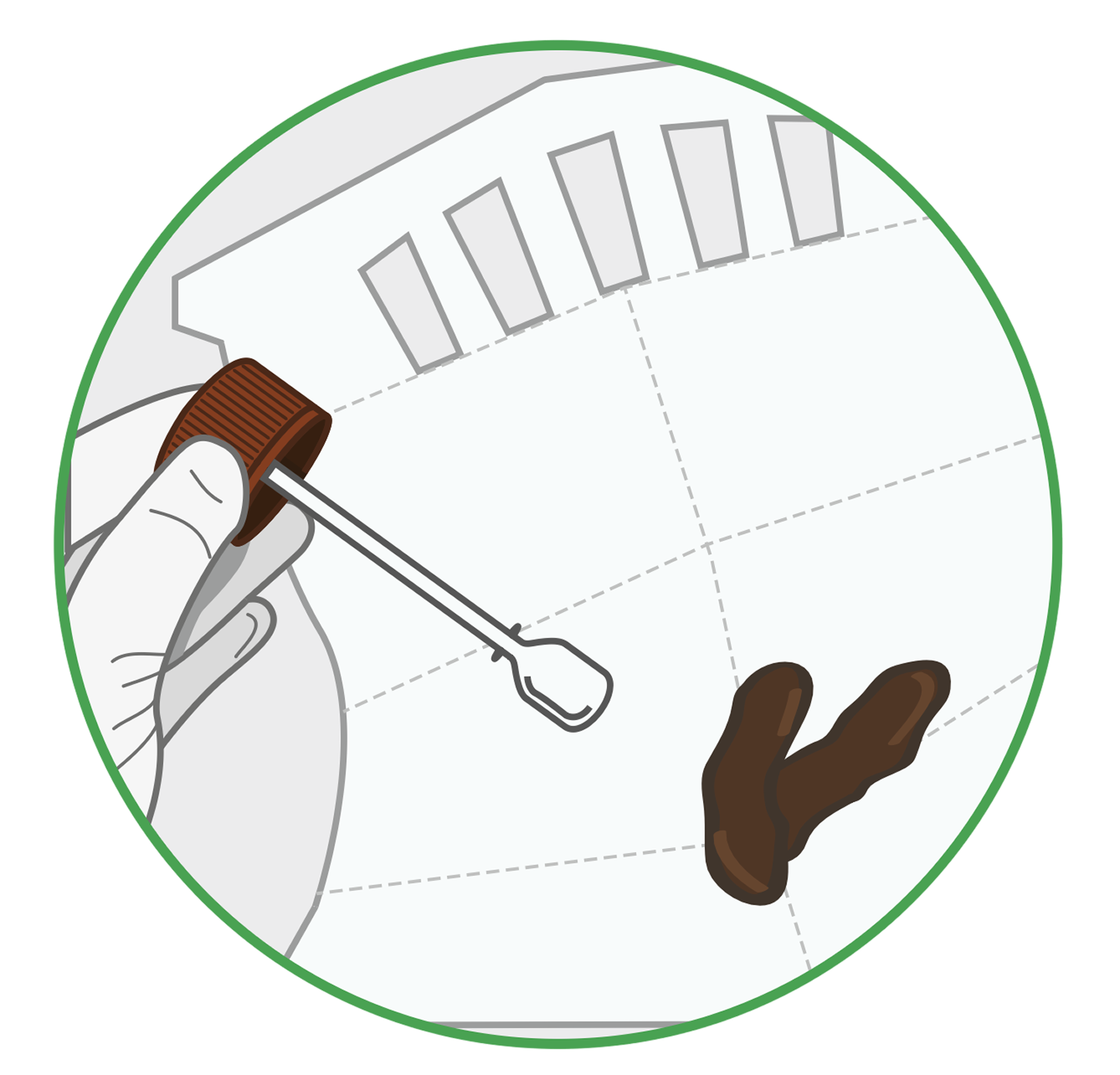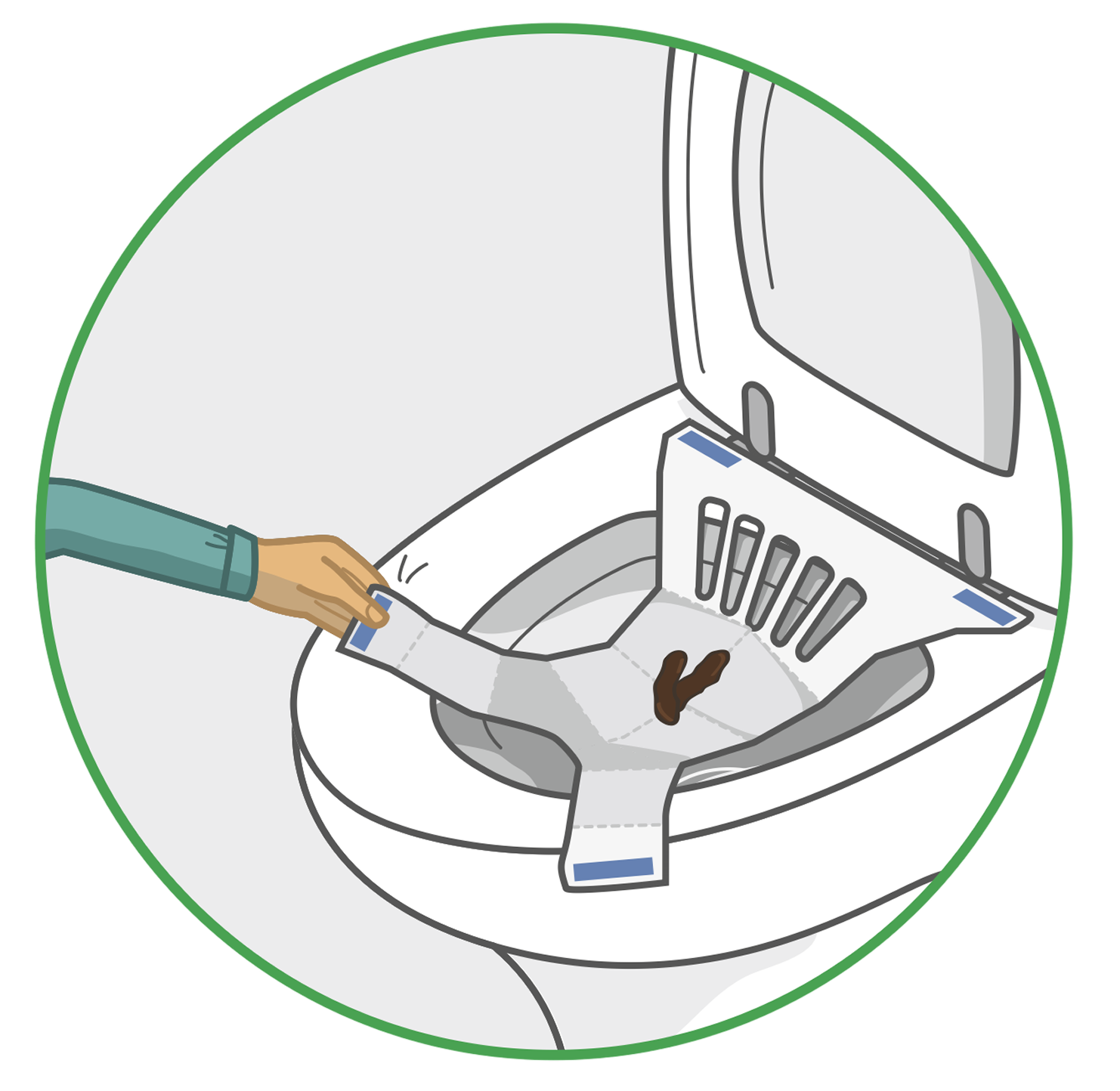 Løsne det vandopløselige samplings-papir, og skyl det herefter ud i toilettet (det skal nok lade sig opløse).